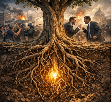 나무는 줄기가 꺾이고 잎이 말라도 뿌리가 건강하면 반드시 회생합니다. 철학적으로 '본질'은 바로 이 뿌리와 같습니다. 갈등이 일상이 되고 고소고발이 난무하는 우리 사회의 혼란은, 결국 공동체를 지탱해야 할 리더십의 본질이 흔들리고 있다는 위험 신호입니다.