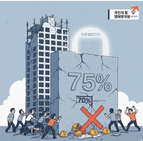 멈춰 섰던 도시 정비의 시계가 다시 움직일 조짐을 보이고 있습니다. 최근 국회에서는 정체된 재개발 사업에 활력을 불어넣을 중요한 법안이 발의 되어 이목을 집중시키고 있습니다. 바로 재개발 조합설립 동의율을 현행 75%에서 70%로 낮추는 내용을 골자로 한 도시 및 주거환경정비법 일부 개정안입니다.